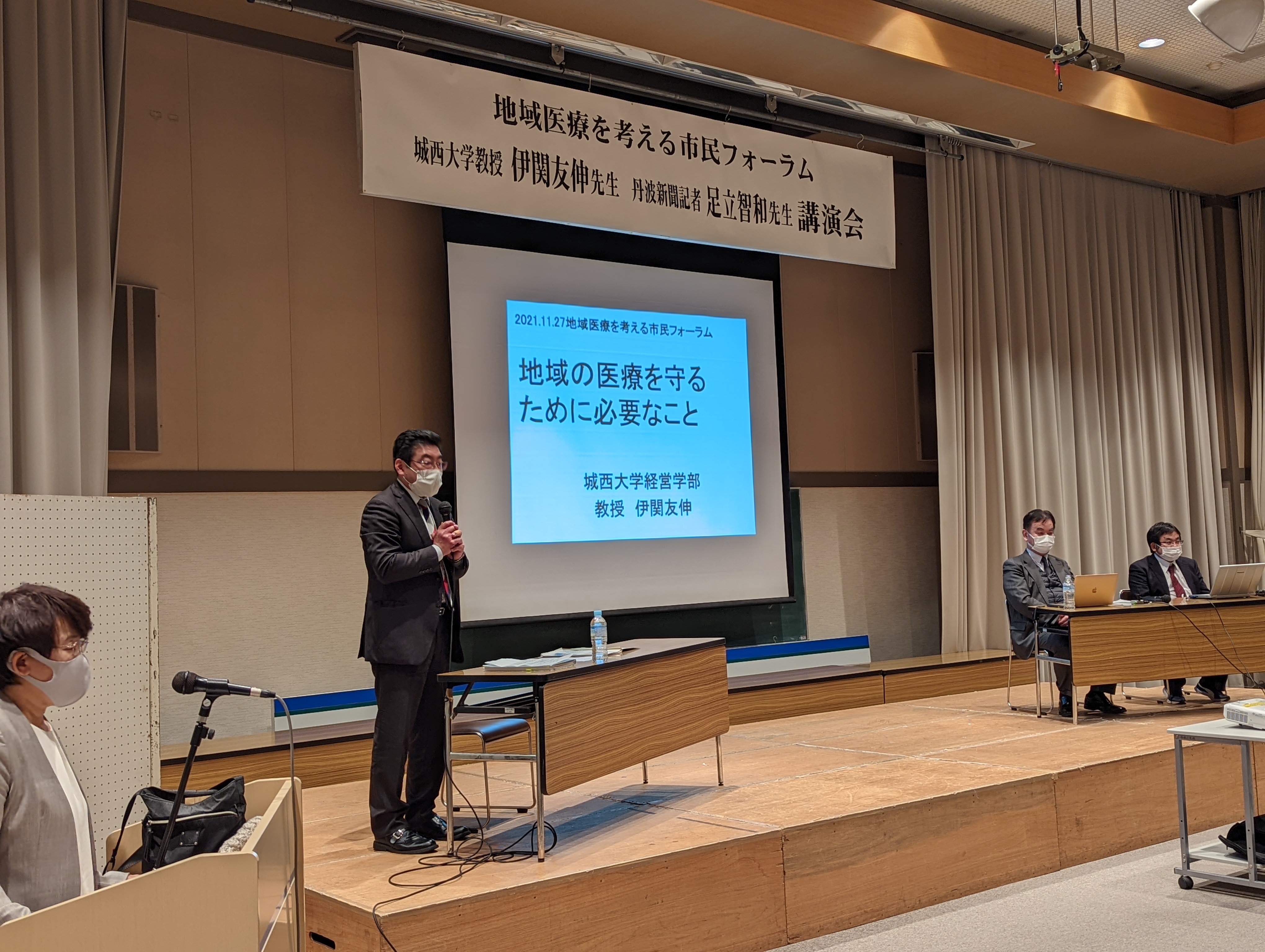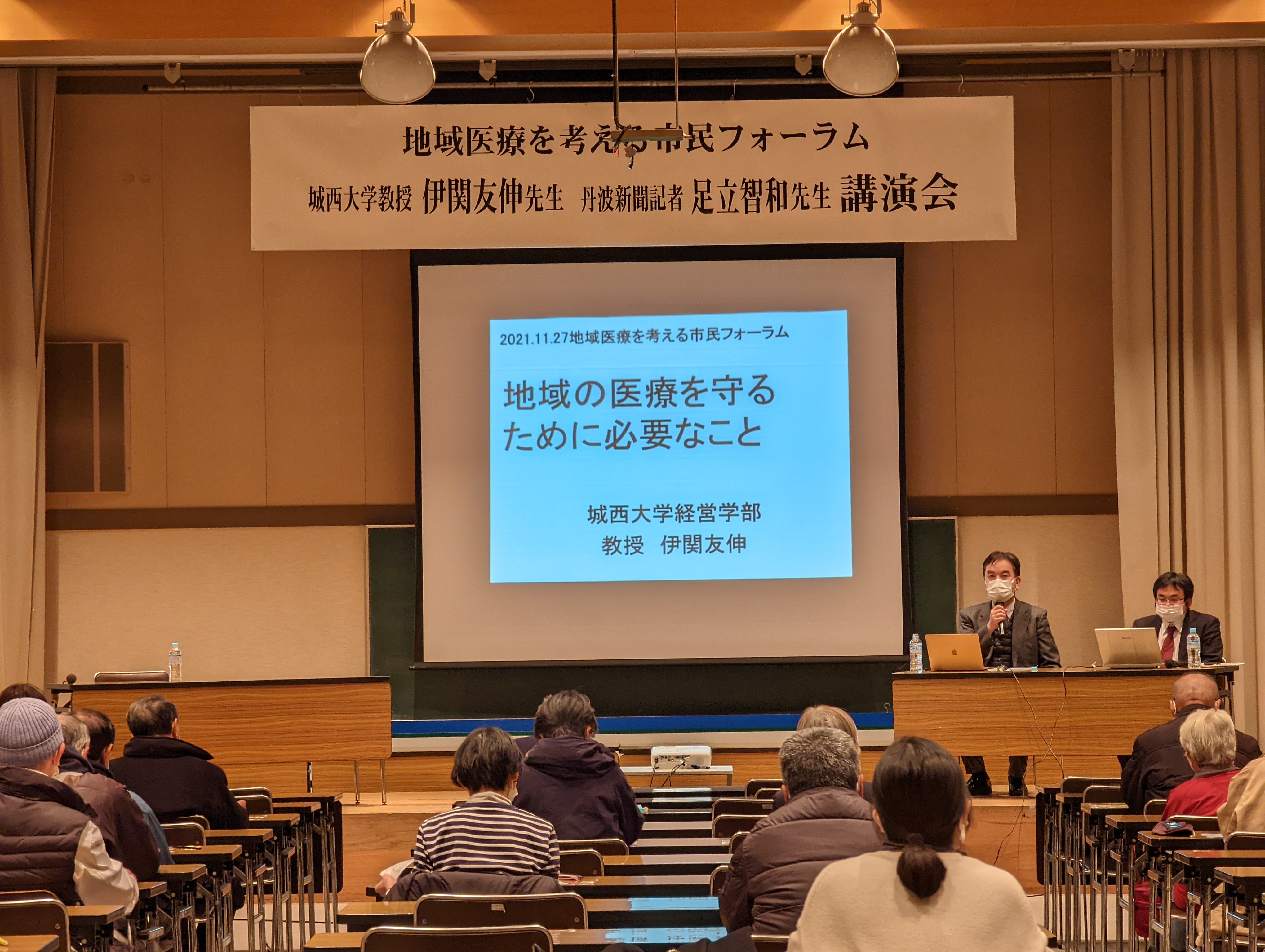 11月27日(土)城西大学教授伊関友伸先生、丹波新聞記者足立智和先生をお招きして、「第2回地域医療を考える市民フォーラム」を開催いたしました。