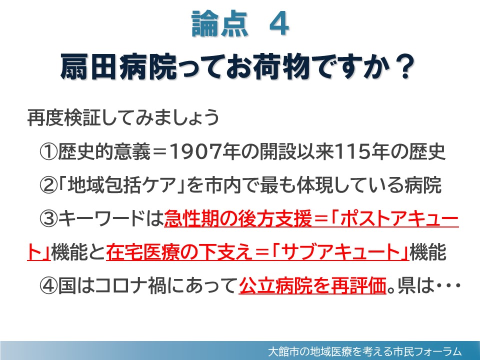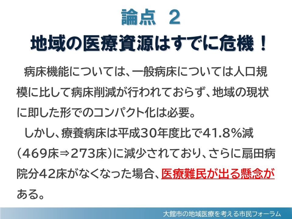 「大館市の地域医療を考える市民フォーラム」としては、この点について引き続き主張してまいります。