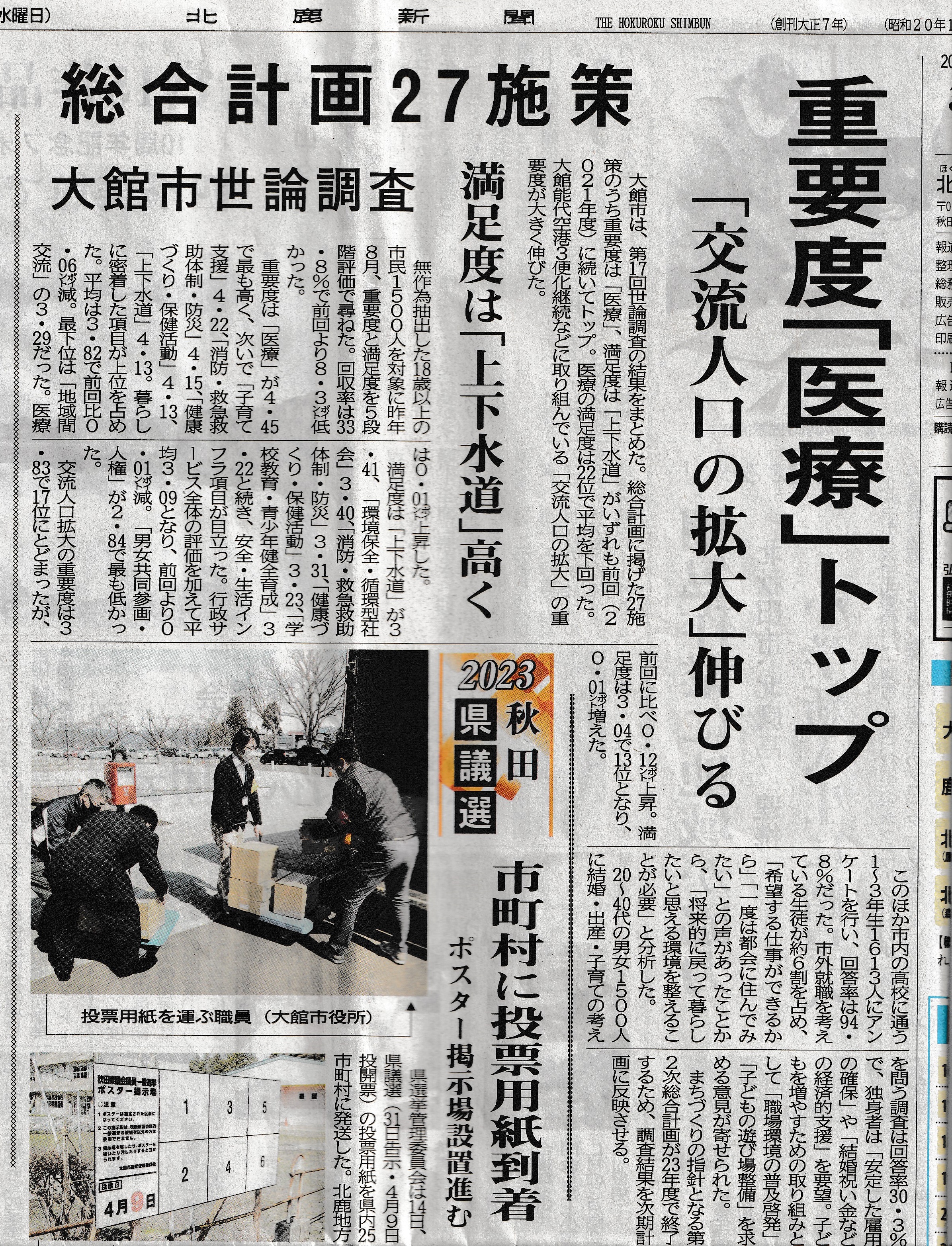 大館市第17回世論調査の結果がこのほどまとまり、今回も市民が最も重要と考える施策は「医療」であることが明らかにされました。
