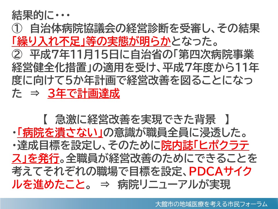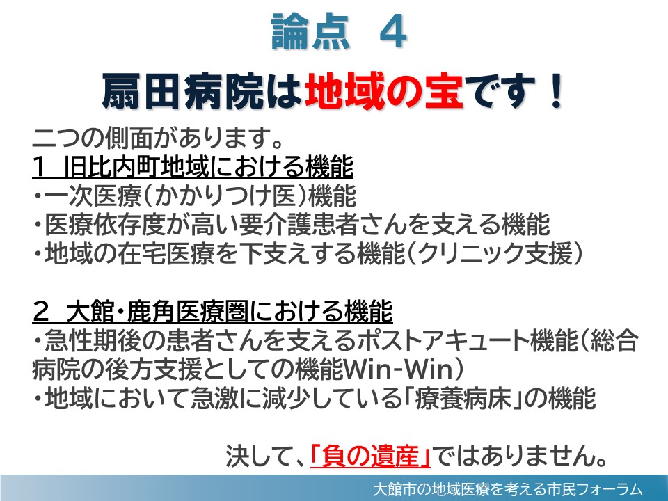 「大館市の地域医療を考える市民フォーラム」としては、この点について引き続き主張してまいります。