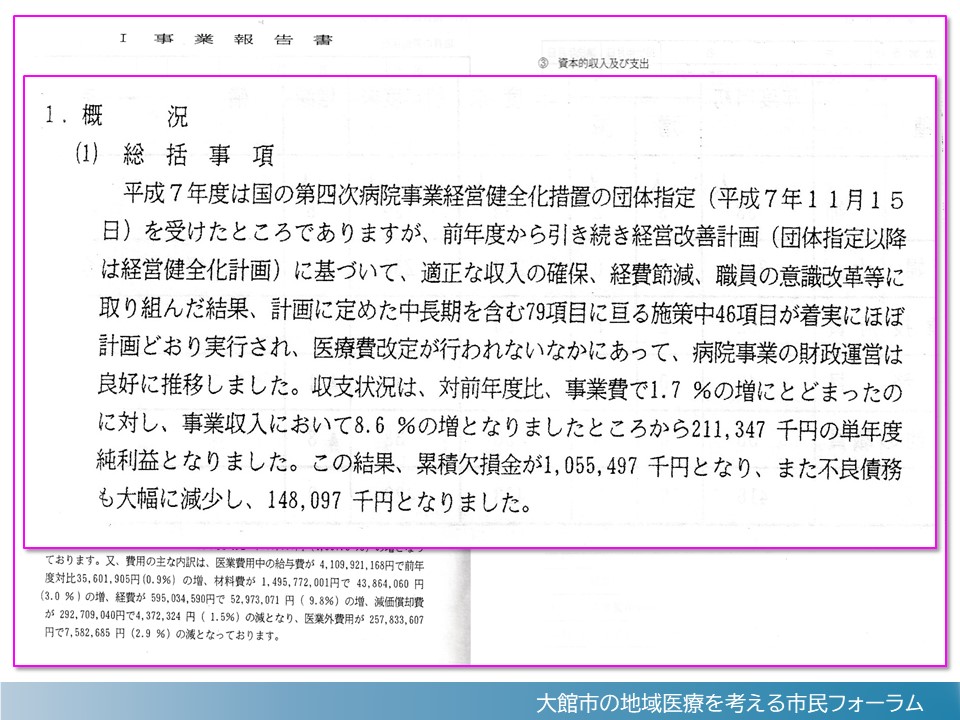 吉原管理者答弁 「総合病院では今でもすでに介護度の高い患者を受け入れている。大館はすでに超高齢社会という観点では日本でも最先端であり、急性期も介護依存度の高い患者を診なければならない。伊関教授のことは私もよく存じあげているが、その点ご理解されていないのではないか」