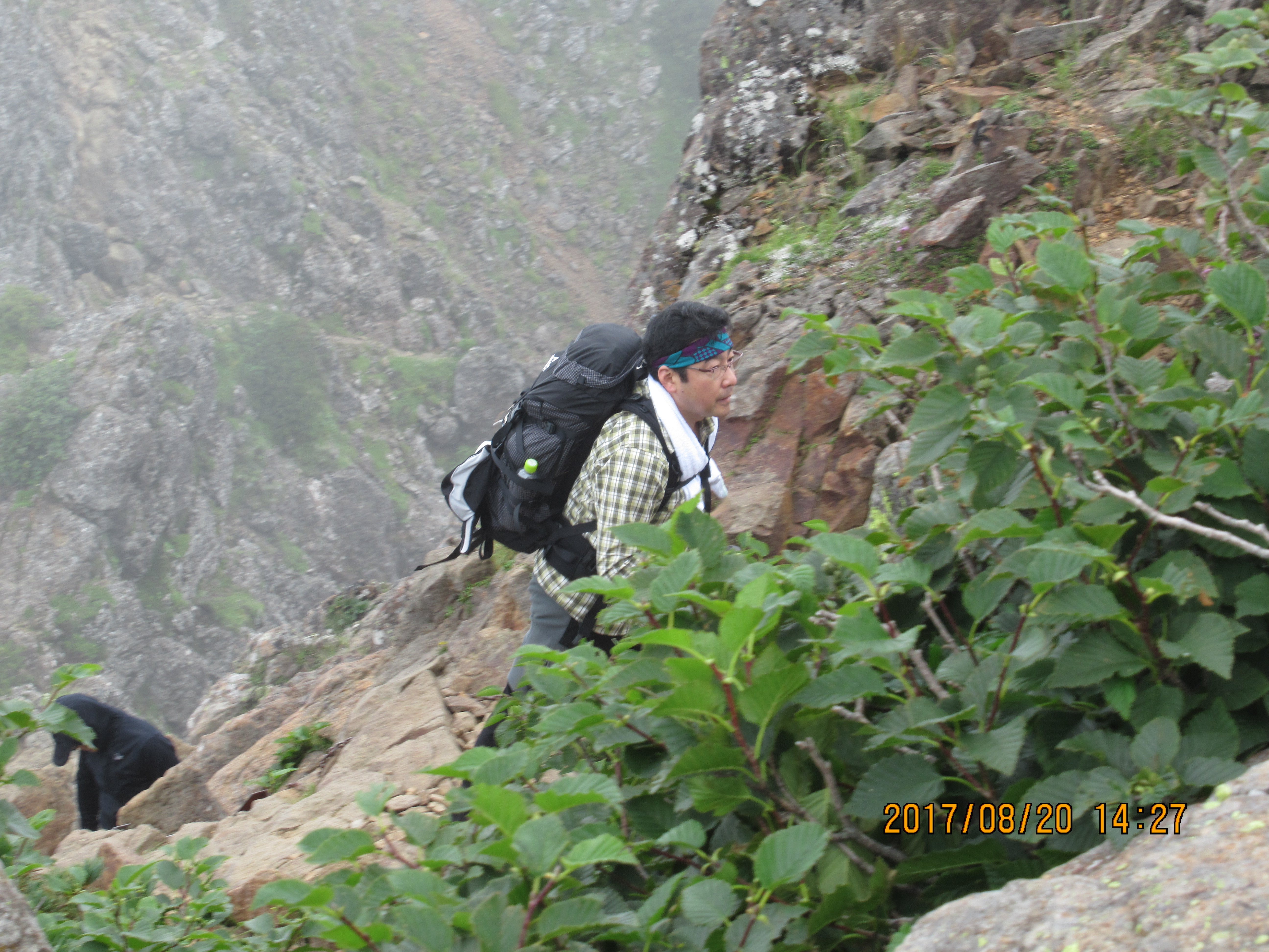 八ヶ岳赤岳登山途中でひーひー言っております。